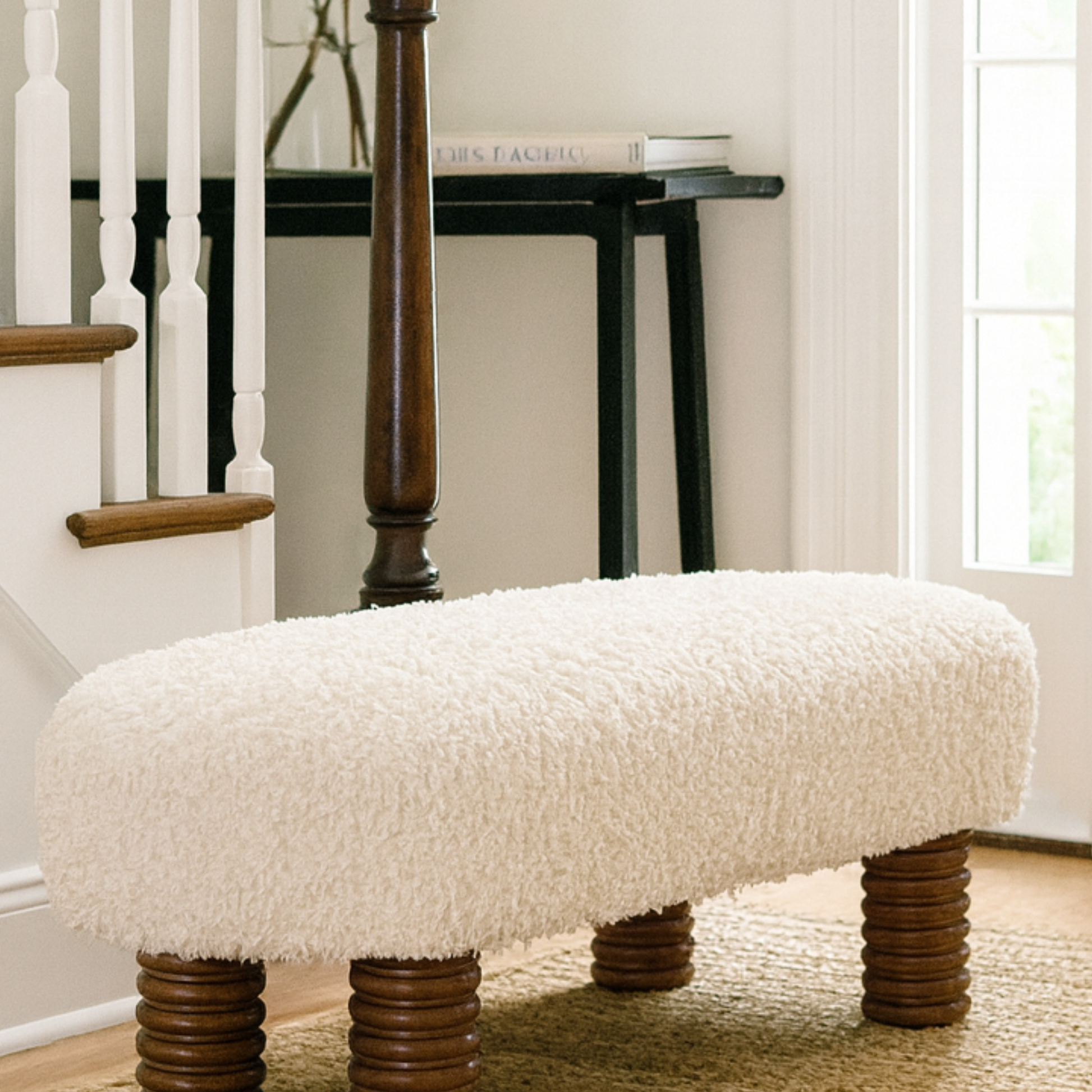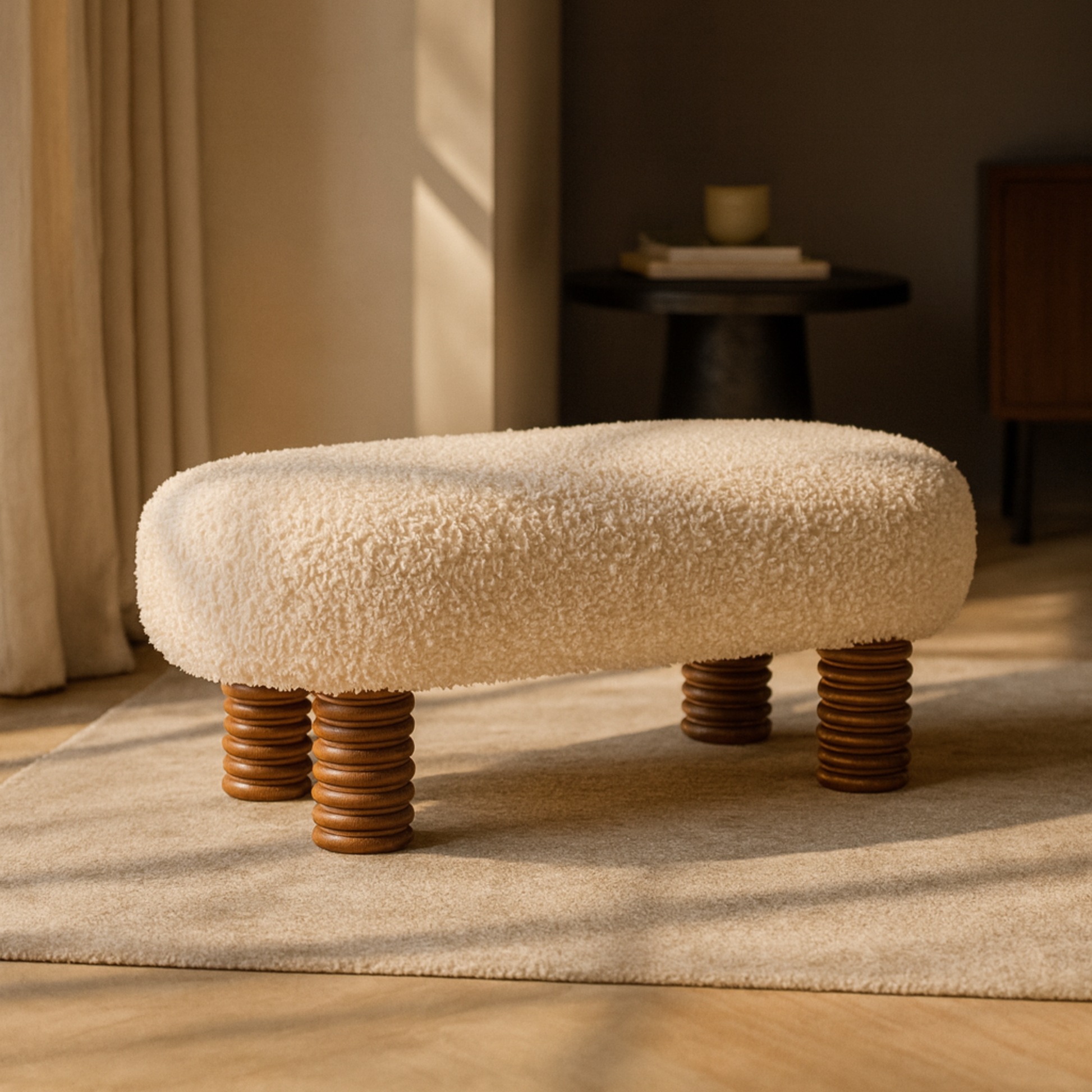 Apresentamos-te a banqueta Jay, uma peça que combina charme natural e conforto irresistível. Revestida em pelo macio, oferece uma textura acolhedora e sofisticada, perfeita para criar um ponto de destaque em qualquer ambiente.