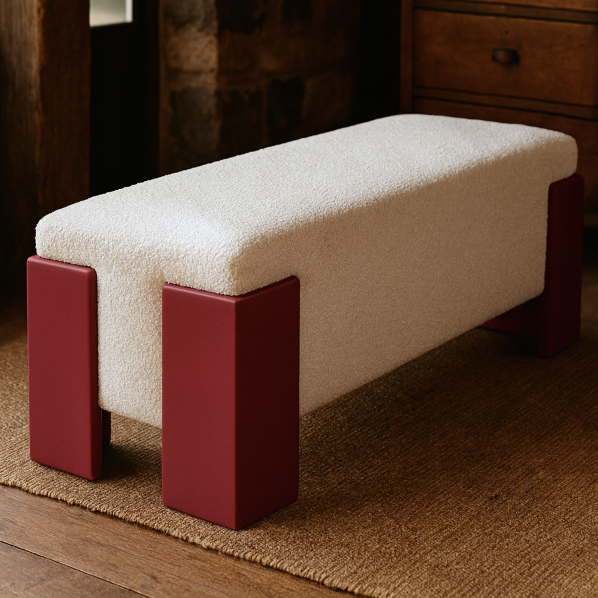 A mistura de pele e pelo confere-lhe um carácter único, sofisticado e acolhedor, enquanto a estrutura robusta garante durabilidade e estabilidade no uso diário.